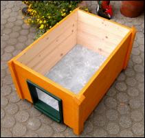 Unsere Schildkrötenhäuser sind aus massivem Holz gearbeitet und wetterfest. Die Aussenwände sind mit unschädlicher Holzschutzlasur behandelt, das Dach ist mit Bitumenbahnen gedeckt. Die Häuser stehen auf stabilen Füssen damit der Boden keiner Feuchtigkeit ausgesetzt ist. |