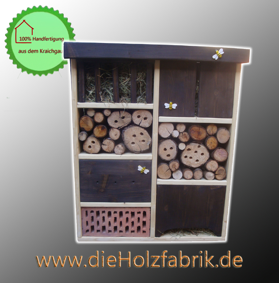 Unsere Insektenhäuser sind aus massivem Holz gearbeitet und wetterfest. Sie können draussen im Garten oder im freier Natur aufgestellt oder aufgehängt werden. Ein schöner Blickfang und eine Hilfe für unsere heimischen Nutzinsekten.